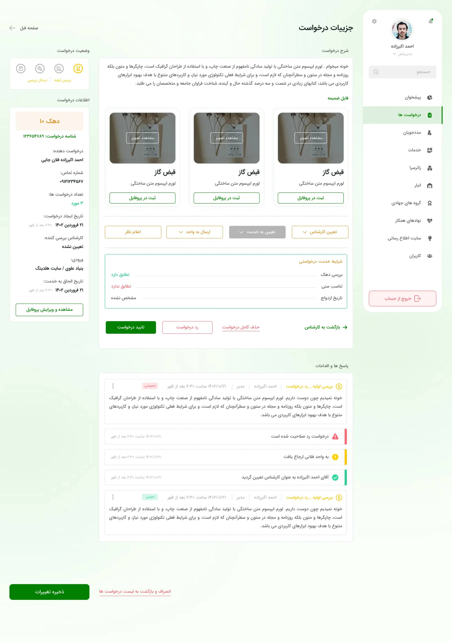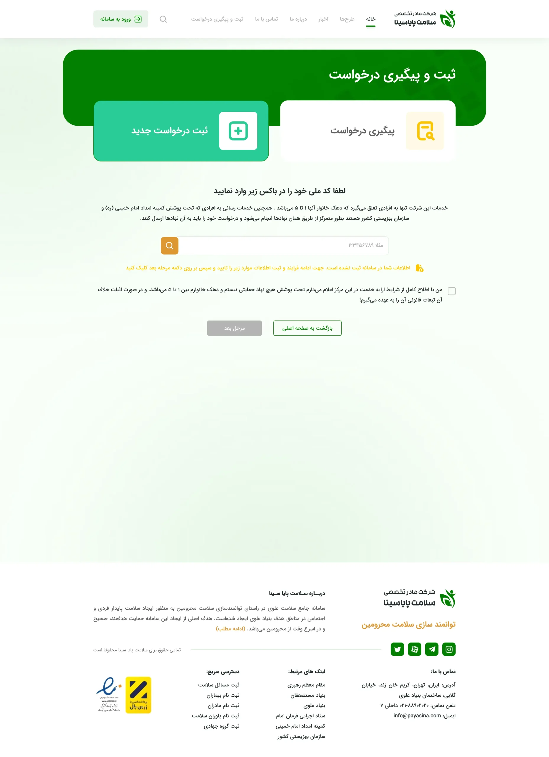 + اتصال به درگاه‌ ثبت احوال برای افزایش ضریب صحت اطلاعات و سهولت فرایند درخواست.